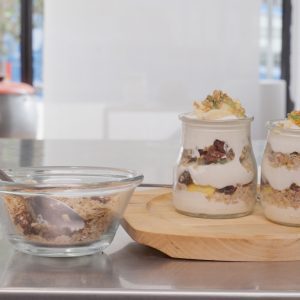 - Una vez fría, guarda la granola en botes de cristal herméticos y guárdala en la despensa.
